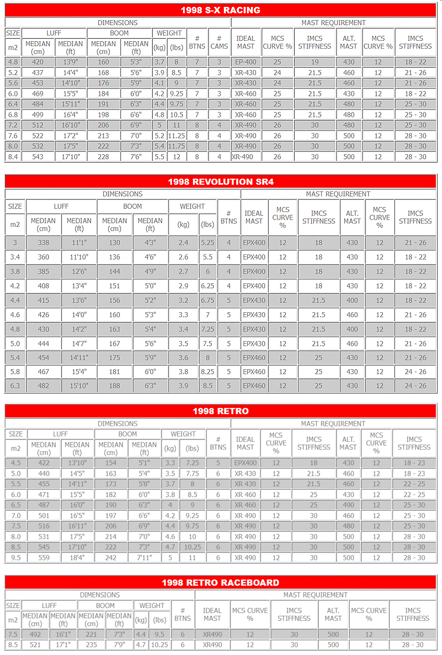 1998 Sail Specifications