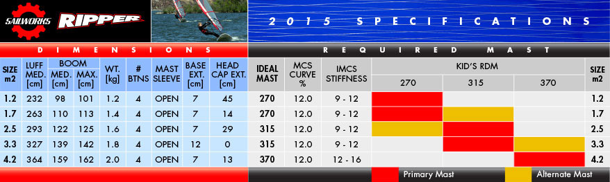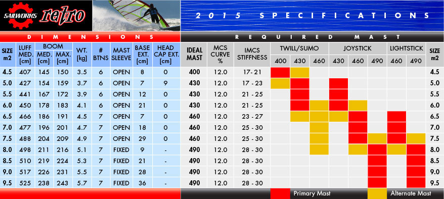 2015 Retro specifications 2015 Revolution specifications 2015 Hucker specifications 2015 NX specifications 2015 Gyro specifications 2015 Ripper specifications